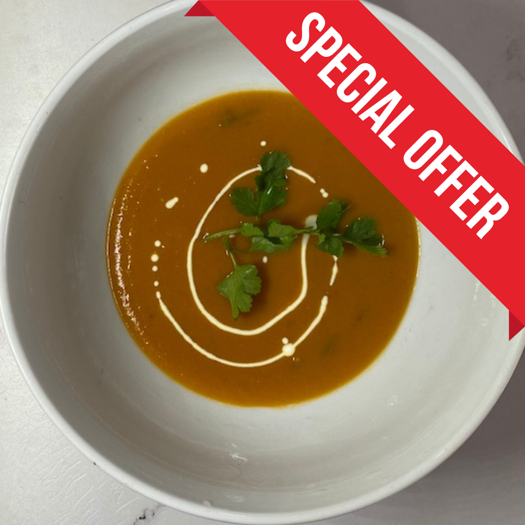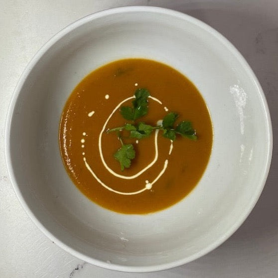 Red chilli, coconut cream, sweet potato, soy sauce, onion, garlic, ginger, lemongrass, coriander, white pepper, sesame oil, lime
